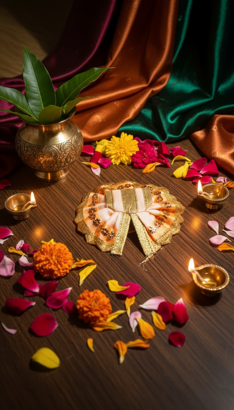 Simple Elegance: This outfit is perfect for creating a peaceful and graceful look for your deity's daily darshan.