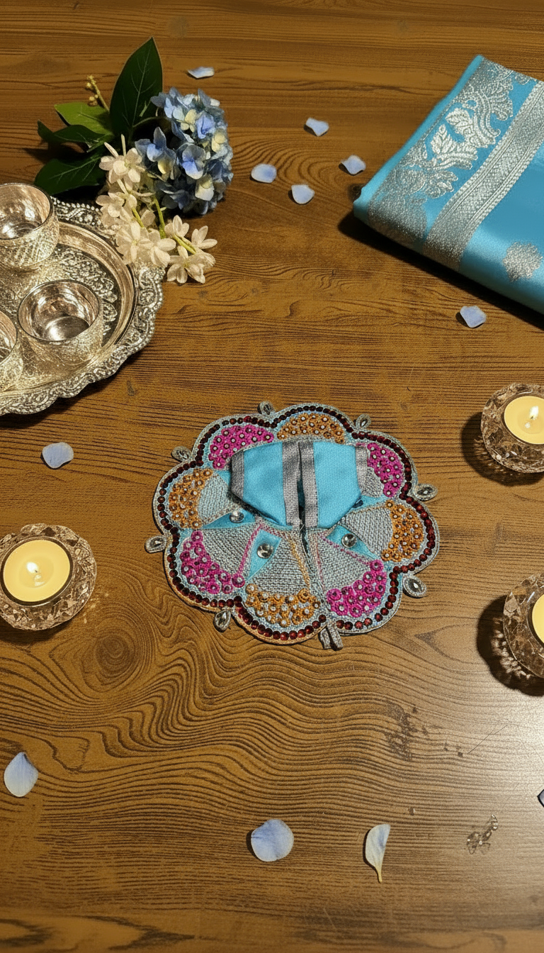 A Symbol of Devotion: This graceful and eye-catching dress is a perfect choice for bringing a feeling of serenity to your deity's vastralaya.