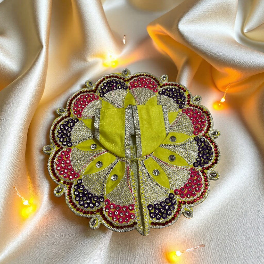 Festive Radiance: A perfect outfit for daily worship or special occasions, bringing an aura of festive radiance and joyful charm to your deity